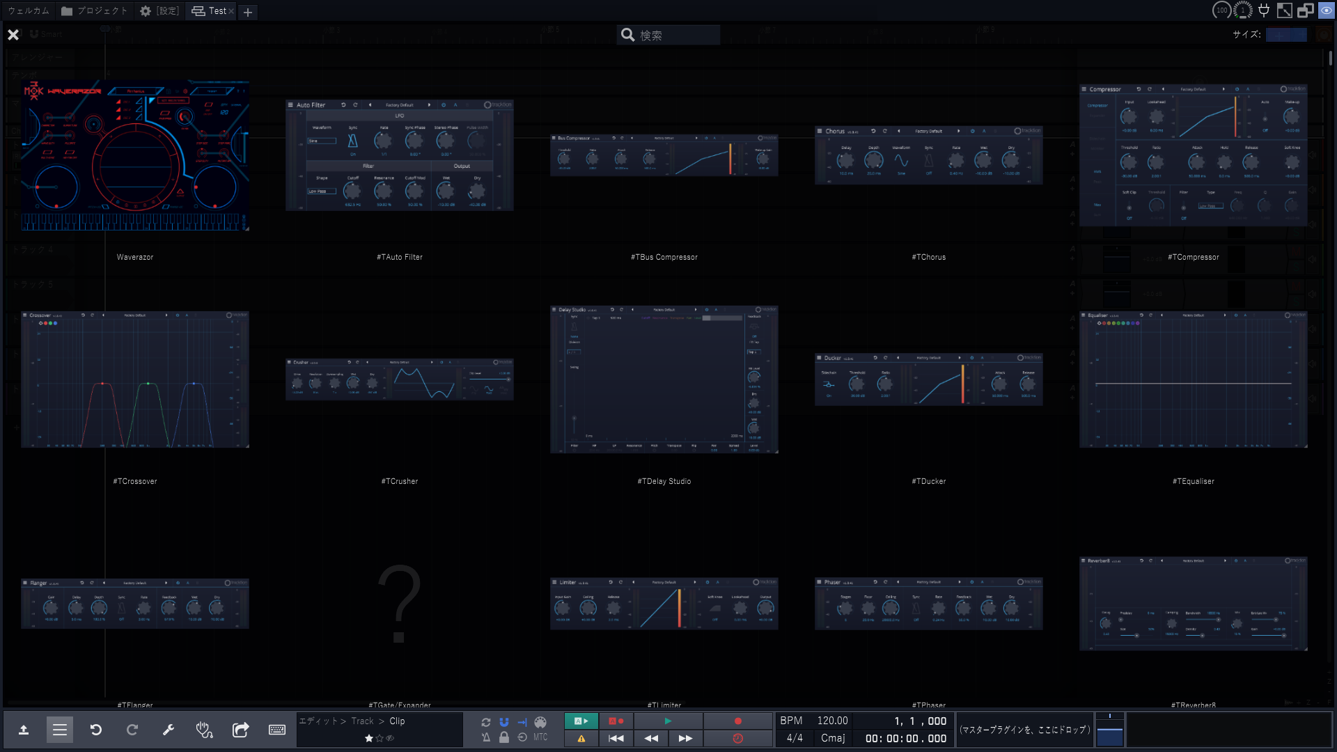 サムネイルのサイズは調整できますし、よく使うVSTプラグインが上に来るようになっていますし、プラグイン名での検索バーなんかもあるので何を使うか決まってるときはこちらを開いたほうが早いかもしれません。