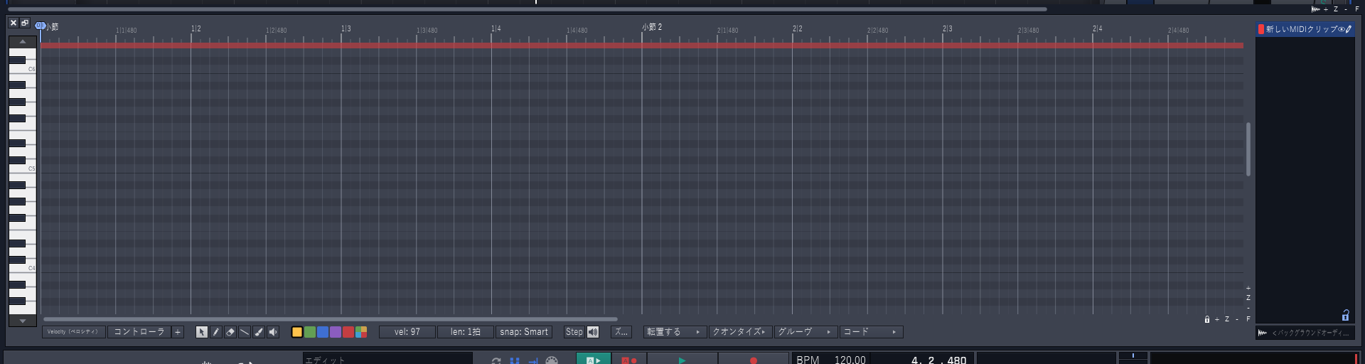2.VSTインストルメントを挿入したトラックにMIDIクリップを配置する(真っ白な楽譜を用意する)